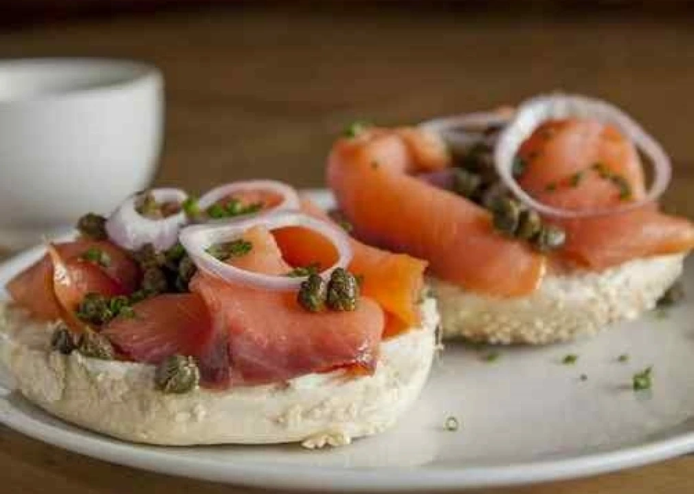 There’s a burger on the menu at lunchtime, along with a corned beef sandwich and a BLT. For brunch, there’s a bagel with smoked salmon, a crab cake eggs Benedict and Belgian waffles with crispy duck confit.