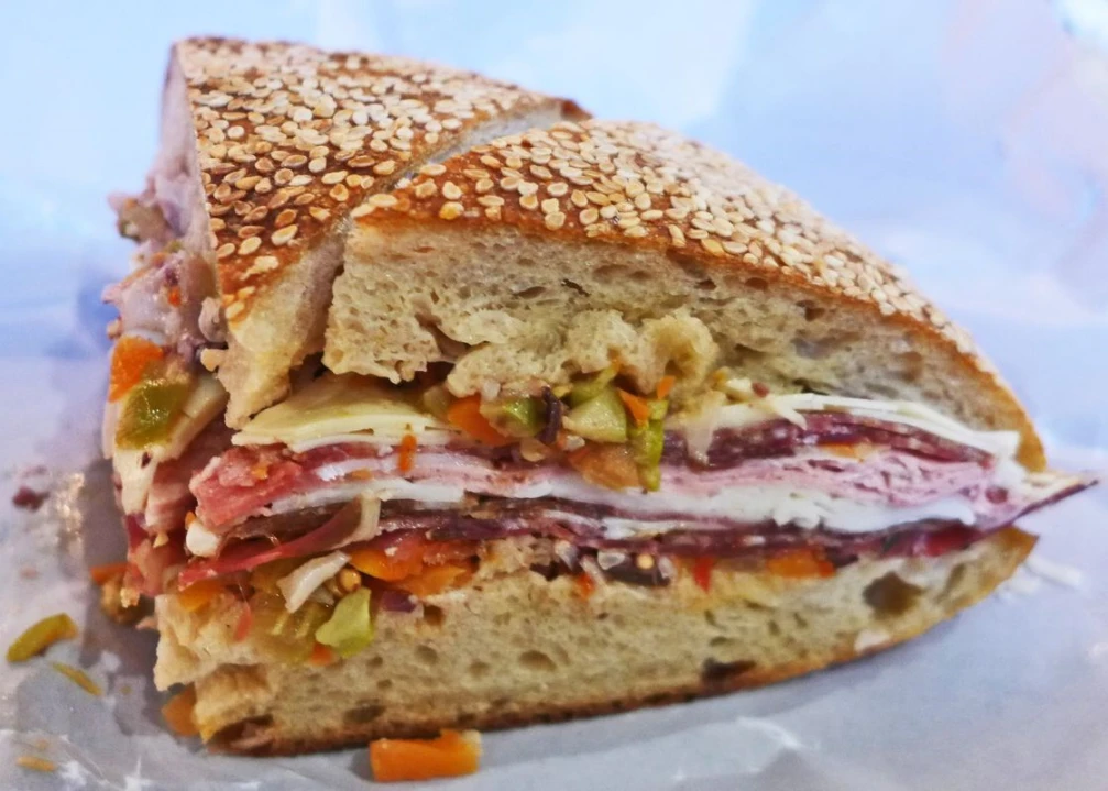 The sandwich traditionally consists of a muffuletta loaf split horizontally and covered with layers of marinated olive salad, salami, ham, Swiss cheese, provolone, and mortadella. The store is currently owned and operated by Tommy Tusa and Frank Tusa, who recently partnered with a local delivery business to ship the sandwich nationwide.