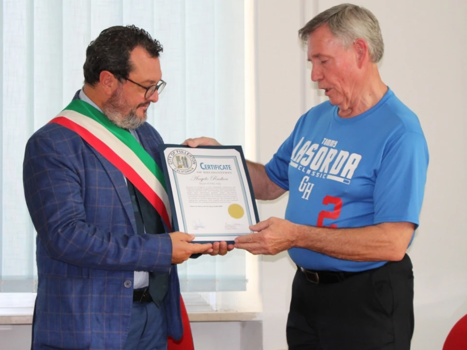 A large delegation from Fullerton, led by former Mayor and current city council member Bruce Whitaker, Laura Lasorda, daughter of Tommy and Jo Lasorda, Roberto Angotti, official ambassador and promoter of the Sister City agreement between the two cities, and members of the Fullerton Sister City Association were guests of Tollo Mayor Angelo Radica to celebrate the Sister City agreement.