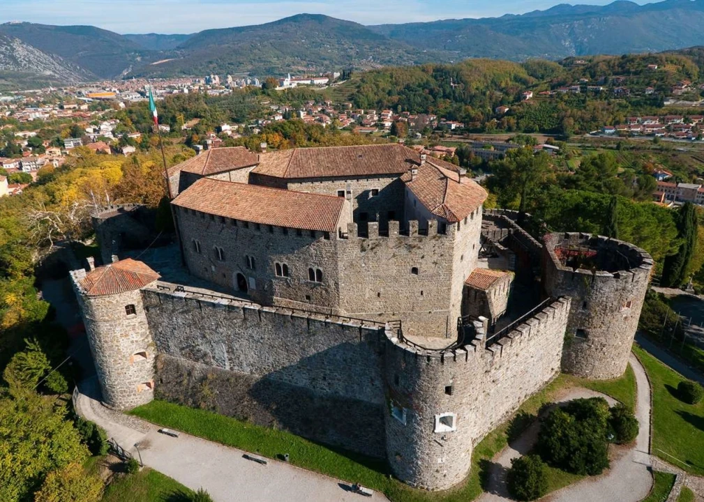 The Castle of Gorizia is today a robust and articulate construction in the shape of a pentagon around the wide Court of the Lanzi. From the Court one accesses the thirteenth-century Palazzetto of the Counts, the west part of the Castle, distinguishable for its five Romanesque two-light windows, and the fifteenth-century Palace of the Provincial States, the east part, connected to the Palazzetto by means of a connecting structure called Palazzetto Veneto.