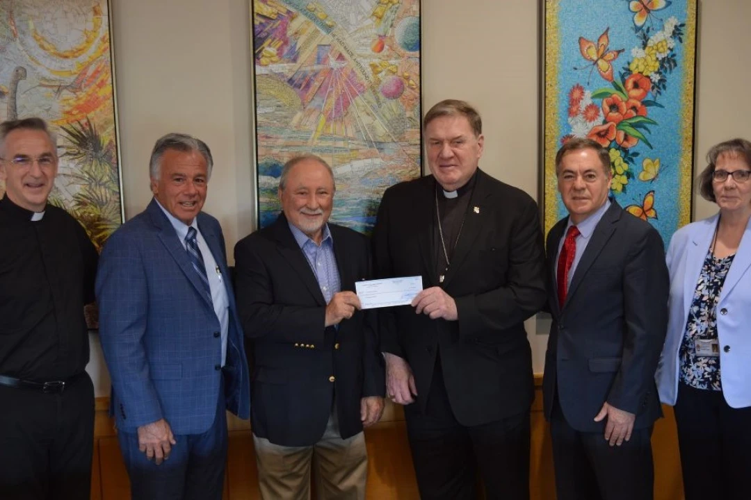 Leaders of the Tri-State Italian-American Congress presented a $50,000 check to Cardinal Joseph W. Tobin, C.Ss.R., Archbishop of Newark; Father Stephen J. Fichter, the Archdiocese of Newark’s vicar of education; and Barbara Dolan, superintendent of archdiocesan schools, to fund needs-based scholarships for Catholic school students of Italian heritage during a special June 5 gathering at the Archdiocese’s Newark headquarters.
