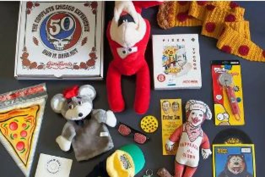The exhibit focuses on pizza pop culture and Logan Square pizzerias. Artifacts include video games about pizza, ShowBiz Pizza Place memorabilia, pizza-themed vinyl records and stuffed animals of retired pizzeria mascots. An opening party launches the show, with free pizza from Father & Son Restaurant, while supplies last, and entertainment by Chicago rapper and pizza enthusiast ShowYouSuck and DJ Charlie Coffeen of the band Sidewalk Chalk.