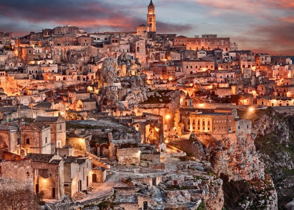 A group of houses, churches, monasteries and chapels were built into the natural grottos of Murgia, a limestone plateau characterized by deep cracks, ravines, rocks and caverns. These are the characteristics and aspects that have made the Sassi and the Park of the Rupestrian Churches of Matera UNESCO World Heritage Site.