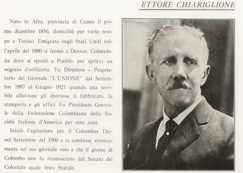 Italians began settling in Colorado in the 1850s, and on April 1, 1907, Colorado became the first state in the nation to establish Columbus Day as a legal holiday, predating the federal government’s designation by 30 years. By the early 1920s, roughly twenty percent of Colorado’s population claimed Italian ancestry. The impact of one Italo Coloradan in particular — Hector Chiariglione — extended far beyond the Centennial State.