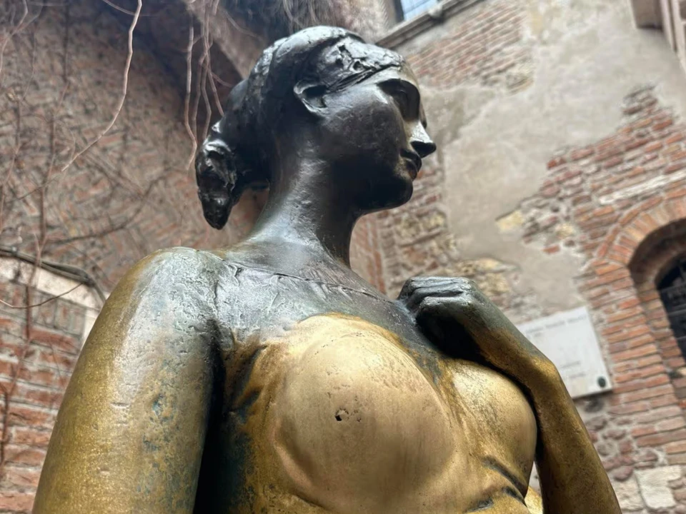 Tourists in the northern Italian city of Verona have once again created a hole in the right breast of a statue of William Shakespeare’s heroine Juliet. The bronze statue sits beneath the balcony in a tiny courtyard where Romeo is said to have wooed Juliet, attracting hundreds of visitors each day who flock there for a selfie and to touch the breast as part of a ritual that is believed to bring luck in love.