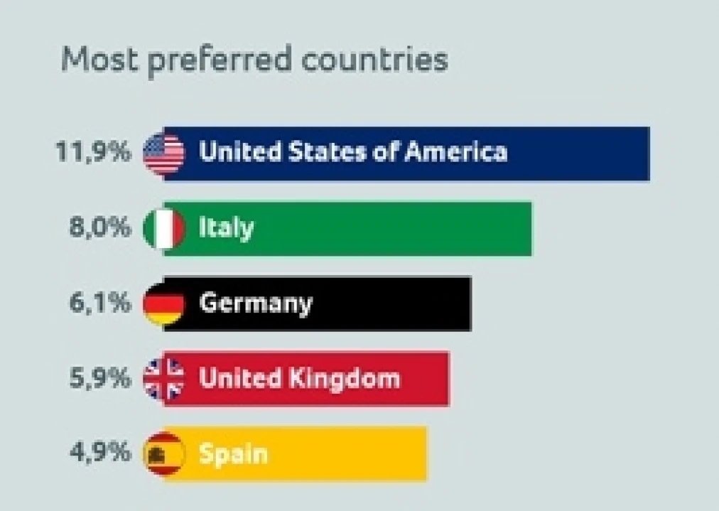 The US topped globally with 11.9 per cent of the total tourists visiting the country. Italy with 8 per cent was the second most preferred destination country globally, followed by Germany (6.1 per cent), UK (5.9 per cent) and Spain (4.9 per cent) in the ranking prepared by HotelsPro, a technology and reservation solutions provider for travel industry professionals and a brand of the world's leading travel and accommodation supplier MetGlobal Group of Companies.