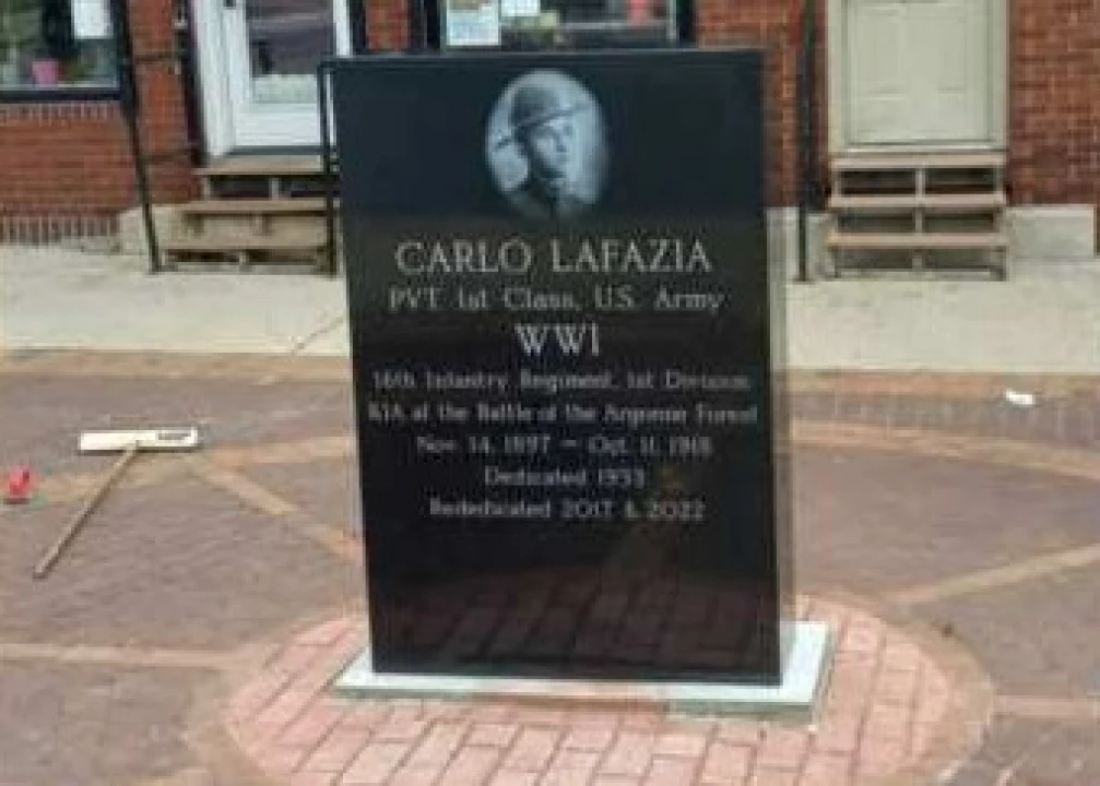 On Friday, the Providence City Council and City Archives dedicated a new monument to U.S. Army Infantry soldier, Private 1st Class Carlo Lafazia, killed in action during World War I. Lafazia was born in 1897 to Italian immigrants who settled on Admiral Street in Providence’s Elmhurst/Wanskuck neighborhood. Lafazia enlisted in the U.S. Army’s 16th Infantry Regiment in 1917.