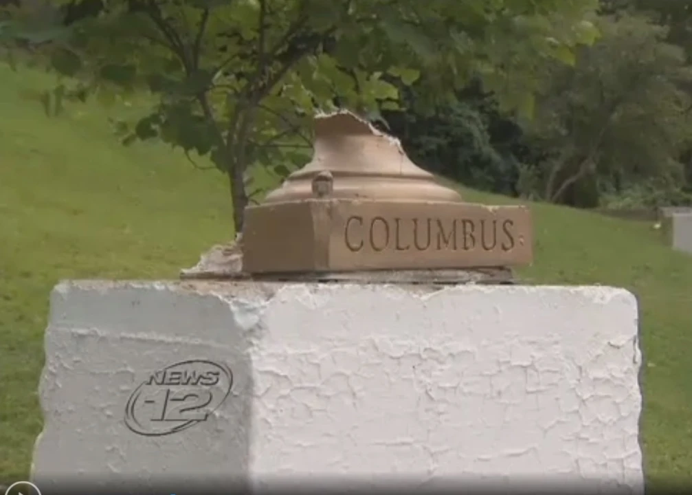 Vandals have damaged the Christopher Columbus statue in a Yonkers city park. Yonkers police say the two-foot plaster statue in Columbus Memorial Park was knocked off its pedestal overnight.