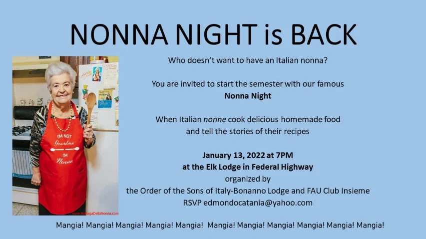 You know where this synergy brought? Our students were able to convince the “nonne” of Boca Raton to cook for them! They invented the “Nonna Night” with the Bonanno Lodge of Order of Sons of Italy. It is one of our most successful activities. It joins food and stories from the local Italian nonni