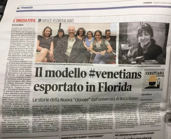 It is a series of Portraits of Italians who live in Florida, written by advanced undergraduate students. They interview them in Italian so they practice their language skills with native speakers. They are published on Facebook and on a webpage. It started in the class I regularly teach, titled “Leggere la Stampa.” The idea came to me from “Venetians,” a column that journalist Carlo Mion writes in Venice, and “Humans of New York.” I thought it would be a good way to connect the students with the Italy that is around them, and make them discover the richness Italians bring to Florida.