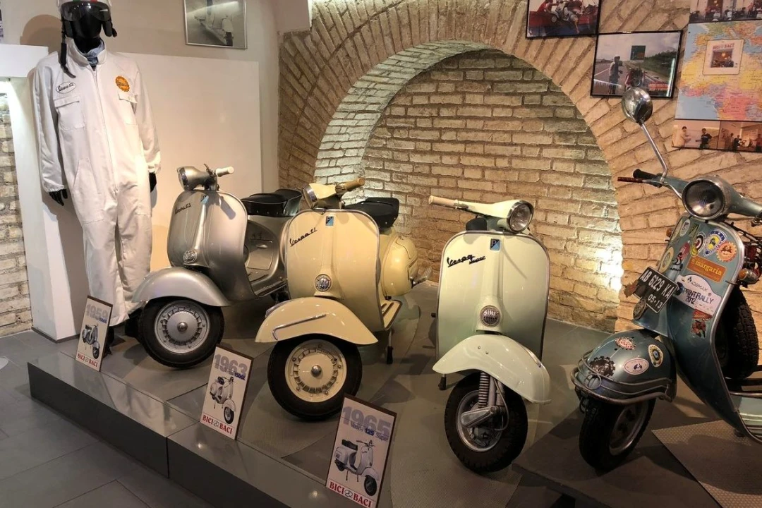 A beloved icon of la dolce vita and modern Italian culture, the stylish scooters are celebrated in a small permanent exhibition located beneath a bike hire store near the Imperial Forum. Visitors who venture into the basement of the Bici & Baci shop will find a Vespa shrine with vintage models from across the decades.