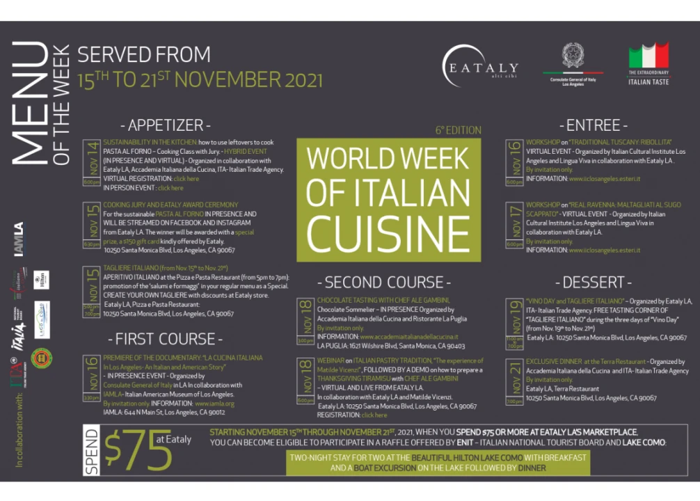 "Tradition and perspectives of Italian cuisine: awareness and enhancement of food sustainability" is the theme of the sixth annual “World Week of Italian Cuisine” which will run from the 15th to the 21st of November 2021.