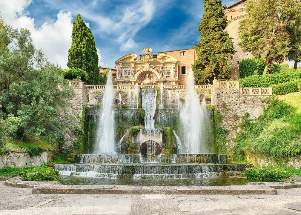 Villa d'Este, in Tivoli, less than 30 km from Rome, is a true masterpiece of hydraulic engineering and a spectacle of Renaissance architecture. It is defined as a "water dream" for its theatricality that amazes and accompanies visitors during their stay in this oasis of peace a stone's throw from the capital, lulled by the cadenced rhythm of the fountains and awesome water games.
