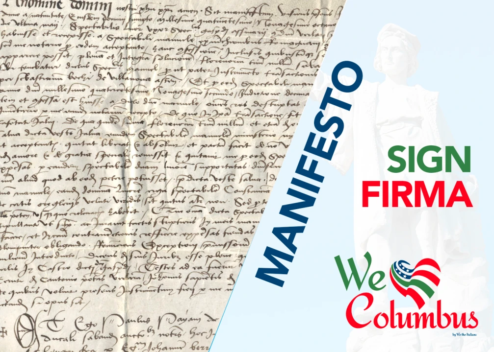 For this reason, we ask you to subscribe to this Manifesto, an expression of individual support for the Italian institutions that have recognized October 12 as the "National Day of Christopher Columbus" among the national and international celebration days, and for the Italian communities in the United States with whom we share the pride of our identity. To subscribe to this Manifesto, please click here.