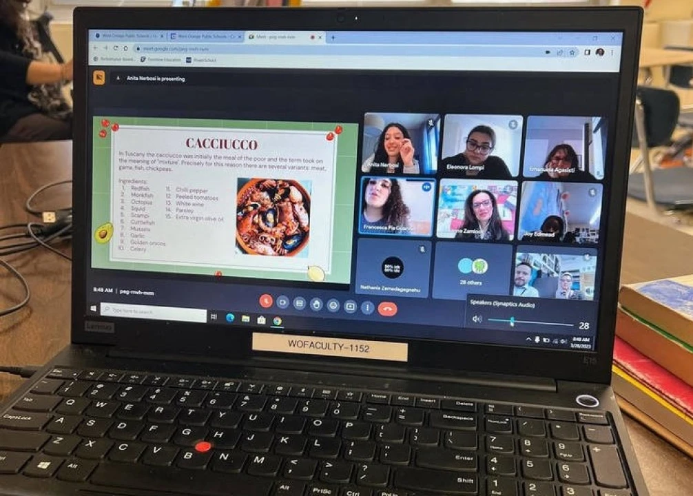 West Orange High School students in Sra. Rosanna Zamloot’s Honors Italian class were able to “parla de cibo”--talk about food–with their friends in Florence on March 28, thanks to Google Meet.