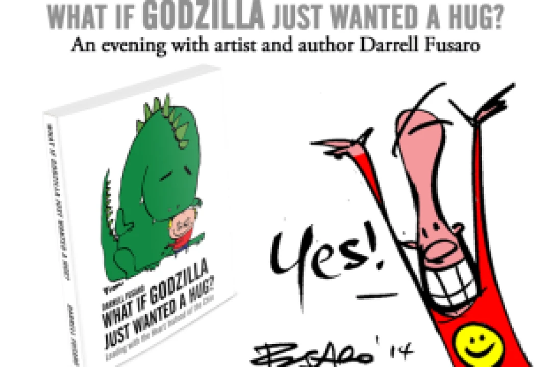 Joining Fusaro on stage will be Edward Biagiotti, his co-host on Funniest Thing! with Darrell and Ed on Unity Online Radio. Each week they share stories about how stepping out boldly always leads to better-than-expected outcomes. Following the performance, Fusaro will be signing copies of What If Godzilla Just Wanted a Hug? Books will be available for purchase.
