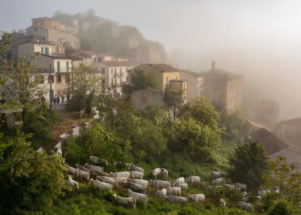 The route from the farm to the animals’ summer pasture follows a tratturo, the Italian word for the paths carved into this land by more than 2,300 years of such migrations. After clattering through Anversa’s cobblestone streets, the sheep and their herders scramble upward.
