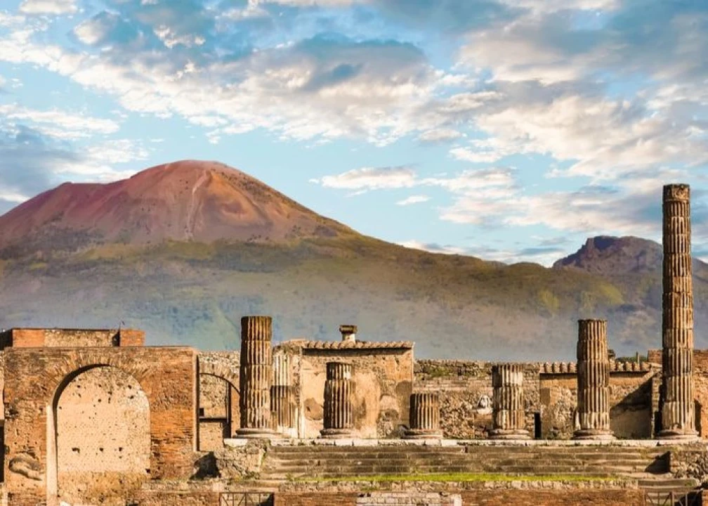Mount Vesuvius in Italy is as deadly as it is beautiful. It is the volcano responsible for destroying (and preserving) Pompeii and Herculaneum (as well as Oplontis and Stabiae). Famously Mount Vesuvius erupted in its fire and fury in AD 79 in an eruption that ejected clouds of stones, ashes, volcanic gases to a height of 33 kilometers or 21 miles into the atmosphere.