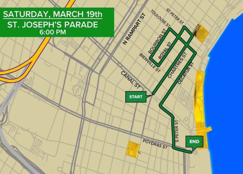 The St. Joseph's Society will celebrate St. Joseph's day with a parade through the French Quarter. The parade starts at 6 p.m. at the Canal and Chartres, then winds it's way through the French Quarter on Saturday, March 19. This year's parade features 16 floats, nine marching bands and plenty of marchers in tuxedos!