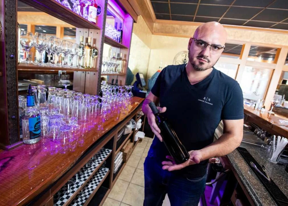 Vito Serradella, co-owner of the Wood Fire Italian Grill on Pauline Drive is offering guests a glass of homemade wine with their wood fire pizzas. “The wood fire brings the aroma,” Serradella said. “It is a culture. It is a whole different experience here.”