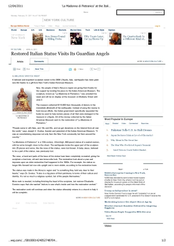 • WTI Events: June 2011 Restoration and exhibition in New York of the Madonna di Pietranico