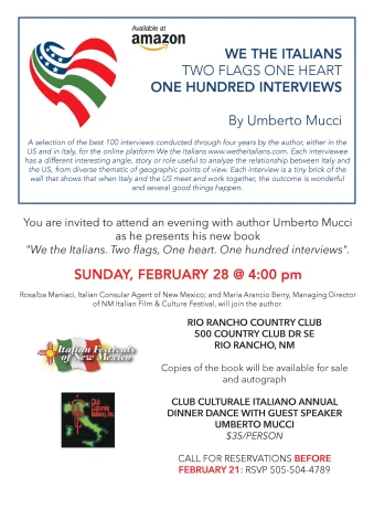 • WTI Events: February 28 2016 Presentation of We the Italians, the book in Albuquerque, NM