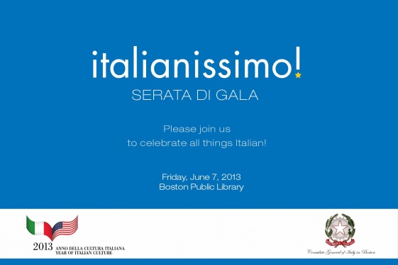 When: Friday, June 7, 2013 — Starting at 7 p.m.Where: Boston Public Library, Copley Square, Boston MA After last year's successful inaugural event, this year's italianissimo! organized by the Italian Consulate General of Italy in Boston is gearing up to be just as good, if not better. The social event will be held on June 7, 2013, at the Boston P...