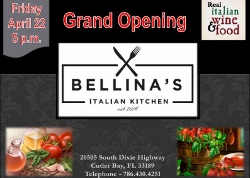 Bellina's Italian Kitchen will be celebrating its grand opening at Southland Mall in Cutler Bay, FL on Friday, April 22nd at 5 pm. Bellina's is more than a great pizzeria, it serves authentic Italian, home-made cuisine. Customers will soon enjoy delicious pizzas, pasta, and more for not a lot of dough! Bellina's makes all their pasta, bread, gelatos, pastries and cookies in-house daily. It is sure to be a crowd pleaser!