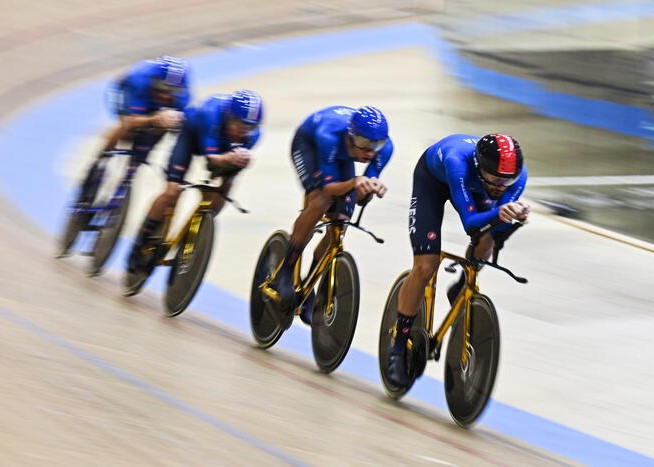 Italy also got another gold earlier Thursday when Simone Consonni, who won Olympic gold at Tokyo with the pursuit team, won the points event ahead of Spain's Albert Torres Barceló and Frenchman Donovan Grondin. Also on Thursday, the women's pursuit team made up of Martina Alzini, Elisa Balsamo, Martina Fidanza and Vittoria Guazzini got the silver behind Great Britain and ahead of Germany.