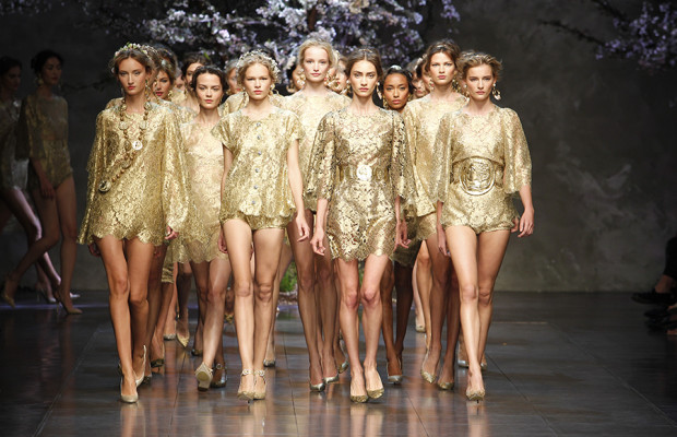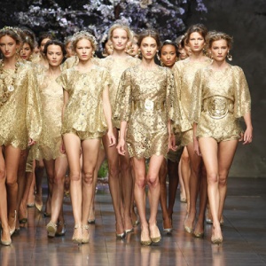 The effect that the two designers want to achieve is that of Federico Fellini's "Satyricon" where temples and theaters become surreal visions. The entire collection praises the female body this time leaving the legs on display with mini tunics and shorts, with midi skirts in lace that cling to the silhouette. Chiffon and organza recall archeological motifs: There's the Valley of the Temples in Agrigento, the theater of Segesta, and the typical Sicilian pottery patterns and the heads of Caltagirone are not lacking. All symbols that the two designers, Domenico Dolce and Stefano Gabbana, have in their hearts and have transformed into iconic images that run through their collections.
