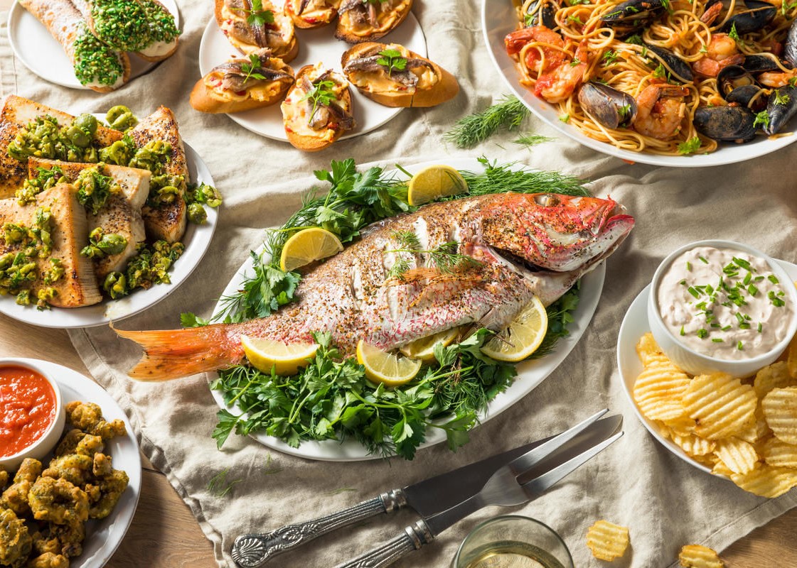 On the night before Christmas, some people are preparing and decorating Christmas cookies, while others are readying a “roast beast” for the oven. But for Italian-Americans, cooking up the right supper can be a bit fishy. While the precise origins of the tradition are not clear, the Feast of the Seven Fishes, also referred to as La Vigilia, honors Italian-Catholic traditions of eating lean, or magro, in preparation for Christmas holiday feasting. Still, it’s difficult to say that this hours-long meal is anything but indulgent.
