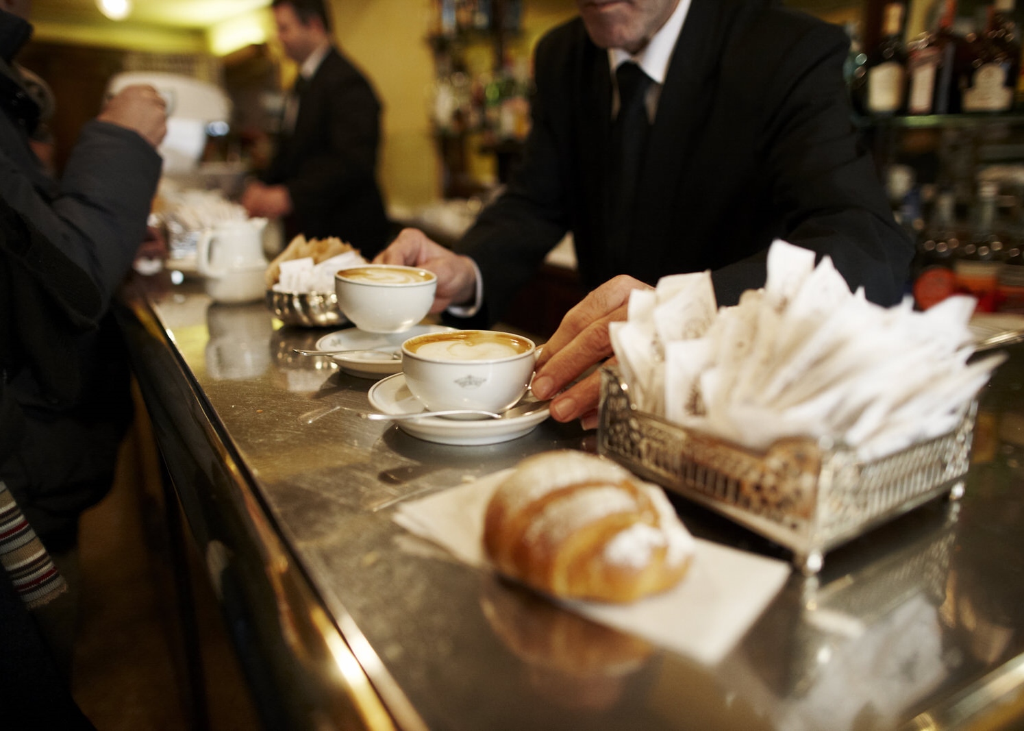 First, a few rules to follow. While most American coffee drinkers will simply drink any coffee concoction as they please, Italians drink certain beverages at certain times of day. For instance, cappuccinos are generally reserved for breakfast—not to be ordered after 11:00 a.m. A macchiato is traditionally enjoyed as a bit of an afternoon pick-me-up and espresso is served after dinner. Also, try to stay away from ordering a coffee to-go. Most cafés in Italy are counter service or table seating only so try to keep that in mind.