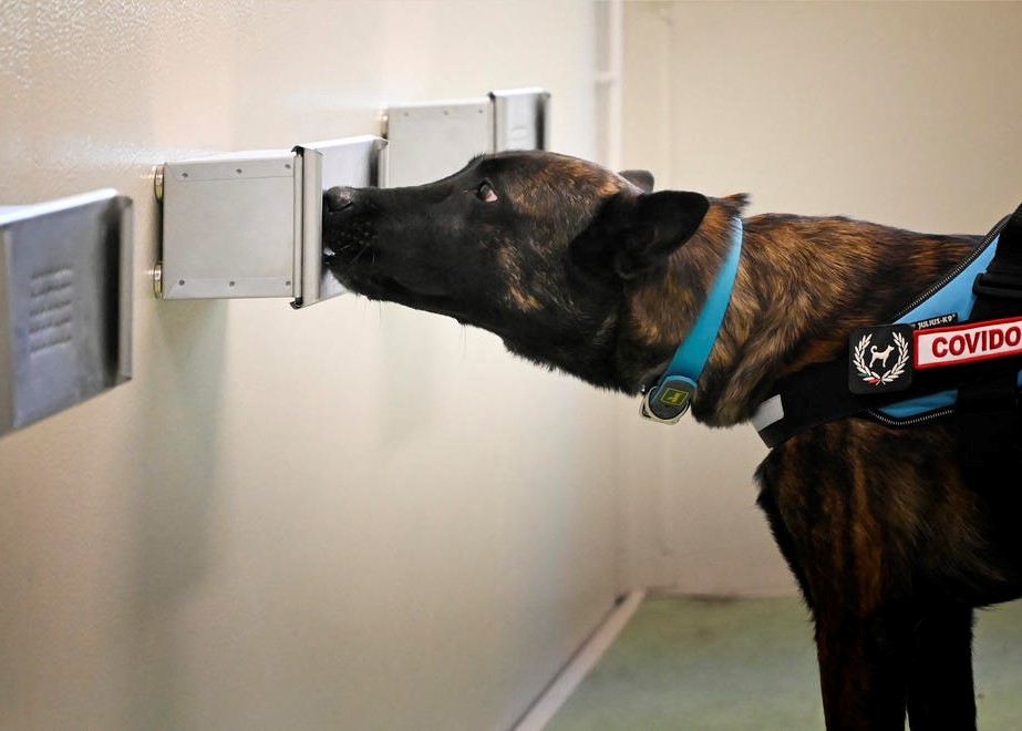 It was Harlock's first day at coronavirus training school and she already showed promise. The one-year-old German Shepherd's task on Wednesday morning was simply to place her slightly wet nose on a black tube. "Sniff," encouraged her trainer, Mr Massimiliano Macera, who was quick to reward his furry student with treats whenever nose met tube.