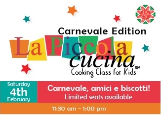 Let’s celebrate Carnevale: Bring your kids to a fun Saturday morning to make mask-shaped shortbread cookies at the ICCC! Join us for La Piccola Cucina Carnevale Edition, a hands-on cultural culinary experience for children aged 3-10 years old. Children will wear chef aprons and toques and learn basic Italian language, metric system and culture while preparing authentic Italian cuisine. Our little chefs will be preparing mascherine di pasta frolla, delicious shortbread cookies which they will shape into carnevale masks and decorate.