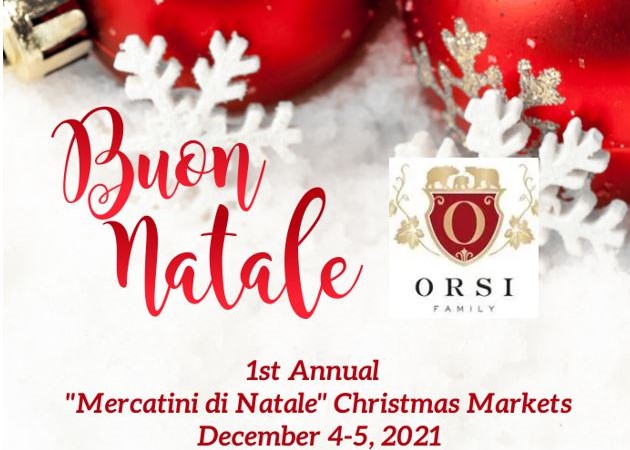 Sun, Dec 5, 2021 at 11:00 AM - Orsi Family Vineyards, 2306 Magnolia Dr, Healdsburg, CA, 95448. Join us for our first annual Christmas Markets at Orsi! Admission is free. Sip on unique Italian varietals while you stroll our marketplace. From beautiful, artisan produced items from Italy and our own homegrown and treasured artisans right here in Sonoma County, there's something for everyone on your list!