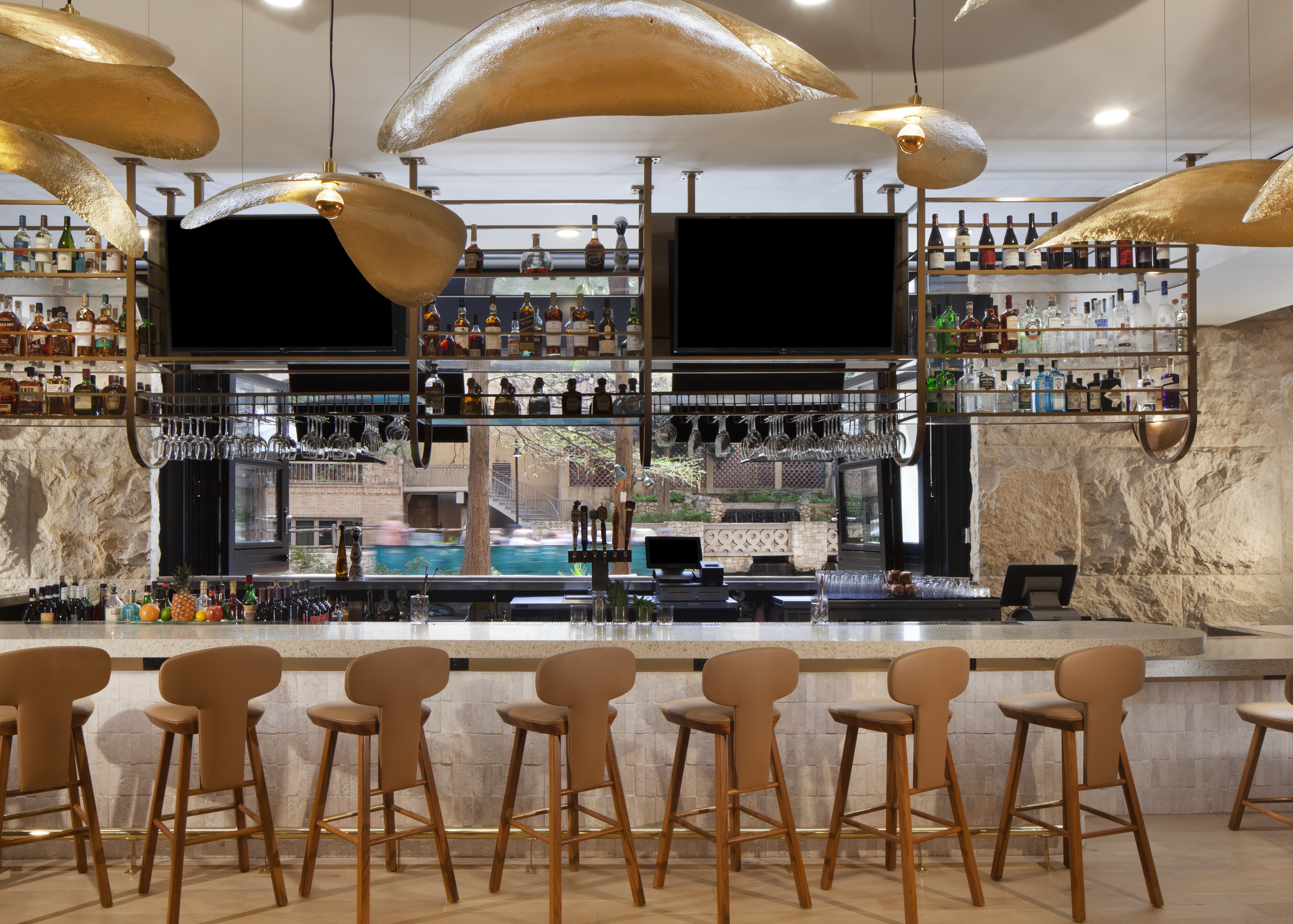 After the three-month-long reno, the restaurant now features an indoor-outdoor bar with river views that features a walk-up component for River Walk visitors to grab tipples on the go. The revamped space also boasts new walled-in booths, cushioned banquette seating areas and what management is calling a “vino-inspired private dining room.” Other aesthetic details of the updated open concept include gold accents, fresco murals and fragmented stone.