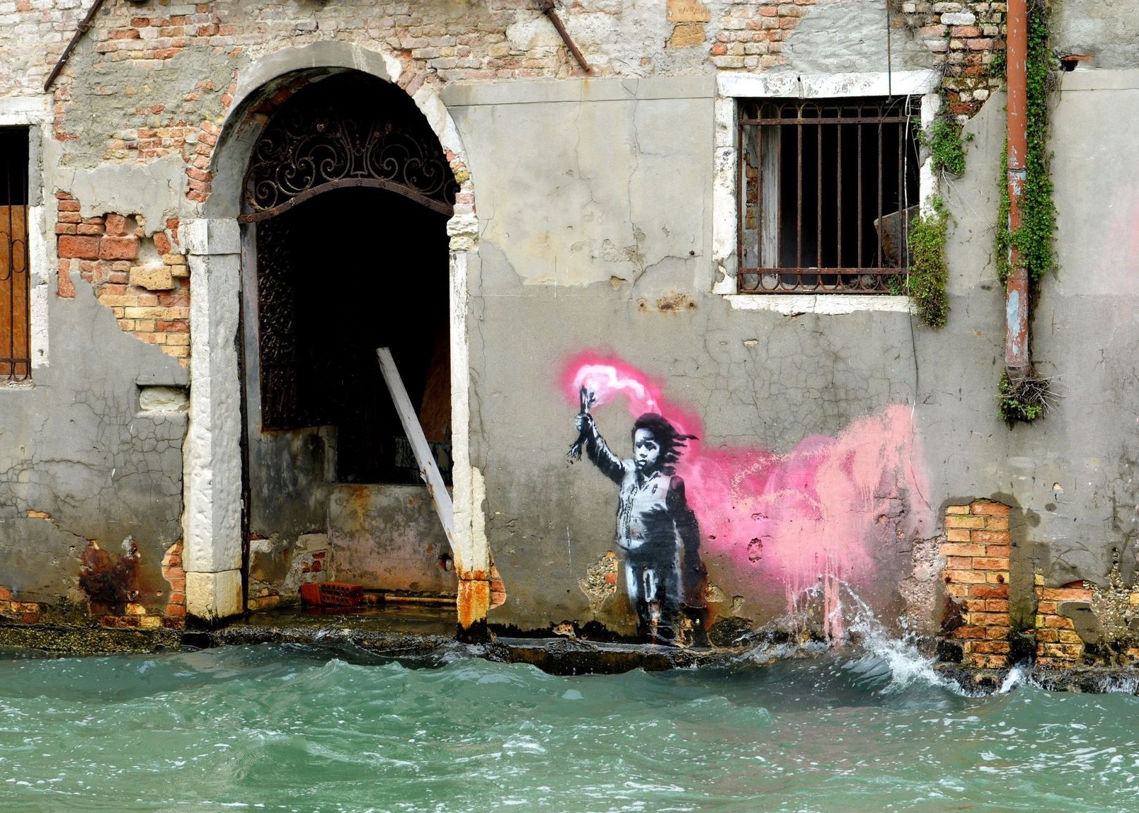 Migrant Child, the famous mural in Venice, becomes an immersive experience thanks to Digital Street Art that transforms it into Ghost over Banksy. The mural by the famous and mysterious British street artist Banksy is transformed into Digital Street Art thanks to a fantastic project realised in Venice by the collective Pepper's Ghost.