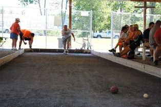 "Just bounce it off the wall and around," others shouted to their teammates. In bocce contestants throw or roll a softball-sized ball down a court toward the pallino, which looks like a cueball.