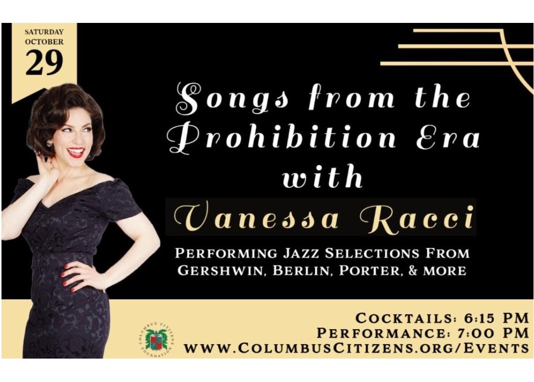If you missed Vanessa Racci on the Red Carpet at the Columbus Day Parade, you can still celebrate Italian Heritage Month with her performance at the Columbus Citizens Foundation (8 East 69th Street, New York, NY) on October 29 at 7 pm. Cocktails: 6:15pm. Performance: 7:00-8:00pm. Cost: $45/person