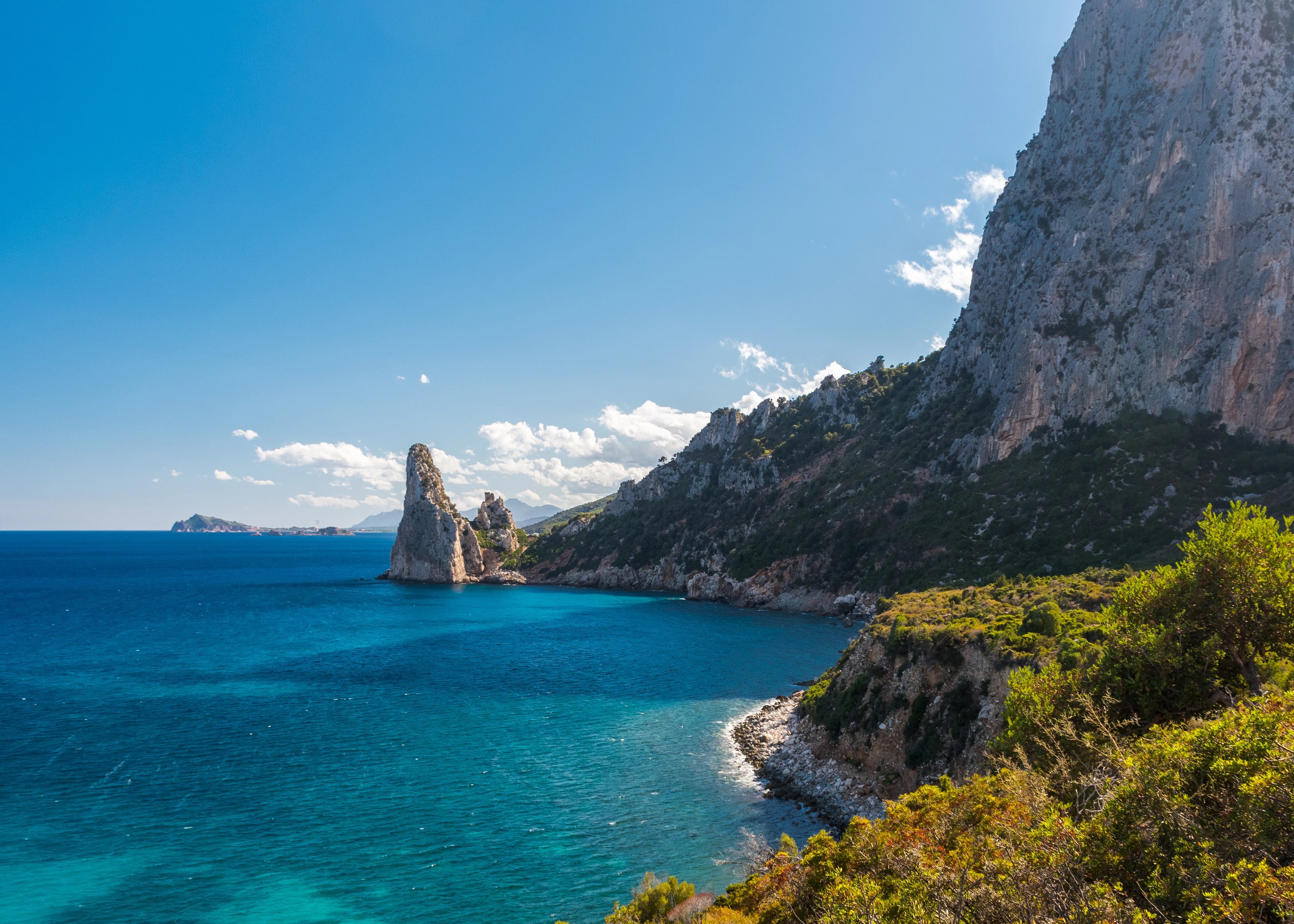 In its east is the Supramonte Ogliastrino, a chalky plateau dominated by Monte Corrasi (4,800 ft high) and extending throughout the territories of Oliena, Orgosolo, Dorgali, Bunei and Urzulei. It is jaw-dropping and spectacular, cut by deep, jagged valleys (called codule) that lead towards the sea by piercing the calceous littoral walls. The result is a spectacular landscape characterized by gorges and cliffs.