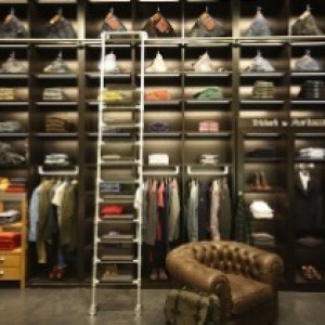 Large arches frame crystalline windows that peer into the boutique, showing off the large iron cast spiral staircase, its hardwood banister and the historic brick walls that surround it. Jeans, jumpsuits, jumpers, t-shirts and accessories decorate the contemporary dark wood shelves and white steel rails, elegantly framed by a rolling library ladder. It seems that the boutique itself is a symbol of the Roy Roger's brand, where history paves the way to the future.