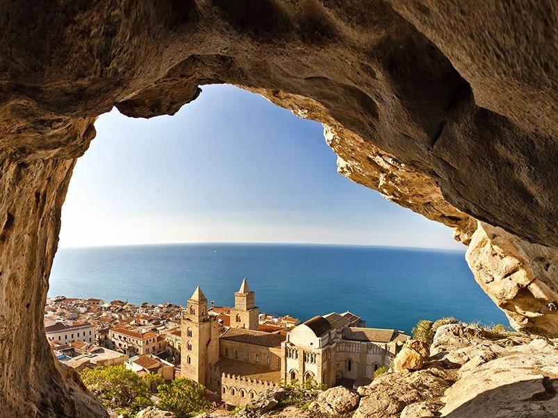 The cathedral is still the hub around which the entire old town of Cefalù revolves, placed in a fascinating setting between the vast horizon of the sea and the broad mountain rising above it. The Rock towering over the city, called the "promontory of Hercules" by the Phoenicians, is a limestone hill 270 m high, from the summit of which there is a splendid view. At the top there is a megalithic structure known as the Temple of Diana, possibly connected with a water divinity, as would be demonstrated by the nearby cistern from the 9th century BC.