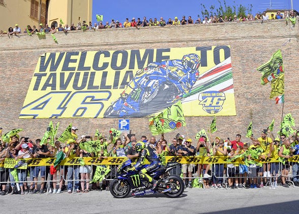 Tavullia was a small unknown town and now it has become a sacred place for fans of motorcycling and Valentino. The number 46 with which Rossi has always competed, in Tavullia is present everywhere, even on the road signs. In that territory there is the ranch of the pilot with the motocross circuit, the VR46 Riders Academy where the young pilots grow up, a museum with his trophies, his bar and restaurant, and every time he wins the priest of the church rings the bells and the citizens take to the streets to celebrate the success.
