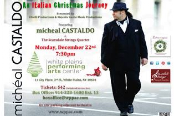 "An Italian Christmas Journey," a traditional Christmas concert featuring award‐winning Italian tenor Micheal Castaldo will take place on Monday December 22, 2014 at 7:30p.m. at The White Plains Performing Arts Center 11 City Place, 3rd Floor, White Plains, NY 10601. Castaldo will perform classic Christmas carols from his chart topping b...
