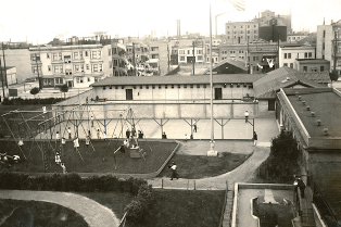 Although San Francisco had parks prior to the 1906 earthquake and fire, for the most part they were for sitting or strolling and not for recreational activities. In 1910, two open air swimming pools (one for boys and one for girls) were built at the location of the current Joe DiMaggio playground and pool. At that time, the play area was called the North Beach playground where at least three of the DiMaggio children, Dom, Joe, and Vince, grew up playing in the original play area during the 1920s.
