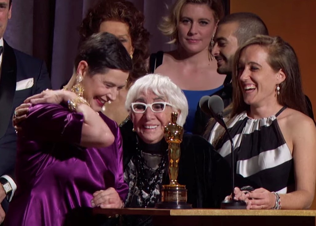 On 27th October 2019, Lina Wertmüller received the Honorary Award at the Governors Awards in Hollywood. In her acceptance speech, translated by Isabella Rossellini, the director half-jokingly asked the Academy to create an ‘Oscarina’ prize for female directors and to give the statuette a girl’s name, ‘Anna’. In reaction to this mocking and provocative joke, the women in the audience present for the ceremony applauded her as a sign of fellowship and respect.