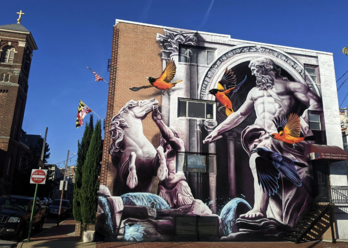 Next time you're in the neighborhood, stroll a block east of St. Leo's Church to Stiles & Lloyd Streets to view this stunning 3D mural painted by internationally acclaimed muralist, CarlosAlberto Garcia-Hernandez. Sponsored by Little Italy Madonnari Arts Festival, the artwork was inspired by the Trevi Fountain in Rome and was painted on the wall of Hospital Support Services on Lloyd Street facing Stratford University.
