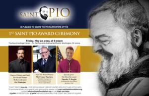 The Saint Pio Foundation is proud to present the 1st "Saint Pio Award Ceremony," which will take place at The Naval Heritage Center (701 Pennsylvania Avenue Northwest, Washington, DC 20004), on Friday, May 22, 2015, at 6:30pm.