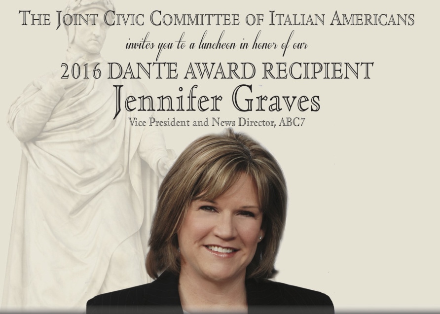 Each year, the Human Relations Committee presents the coveted Dante Award to a member of the local news media who has answered Dante Alighieri’s call to be “no timid friend to truth.” Past recipients have been Irv Kupcinet, John Madigan, Hugh Hill, Dick Kay, Joan Esposito, Walter Jacobson, Mark Giangreco, Emily Barr, Larry Wert, Allison Rosati, Joe Ahern, Merri Dee, Dominic Mancuso, Frank Mathie, Vince Gerasole, Ron Magers, Janet Davies, Greg Caputo, Neil Stienberg, Linda Yu, Stella Foster, Tom McNamee and Bruce Dold. In addition the Filippo Mazzei Public Affairs award is also awarded.