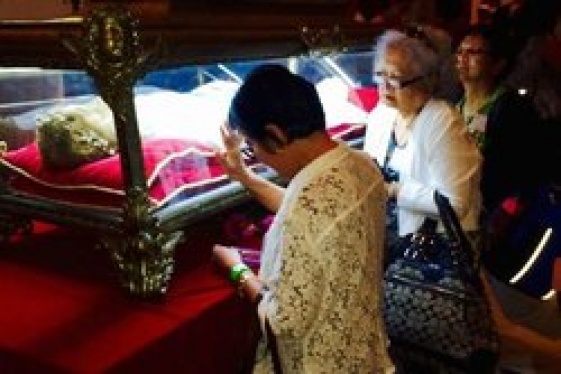 By Patricia Montemurri The remains of a Catholic virgin martyr saint revered for forgiving her attacker before she died were on display today in a Philadelphia church visited by Michigan's papal pilgrims. And the relics will soon be coming to three Detroit-area parishes. The relics of St. Maria Goretti, an 11-year-old killed in 19...